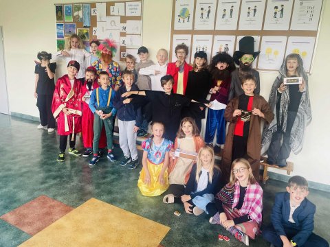 Dzieci wspaniale i kreatywnie przebrały się za bohaterów książki. Stroje doskonale oddawały klimat lektury i sprawiły, że cała sala zamieniła się w bajkową Akademię.