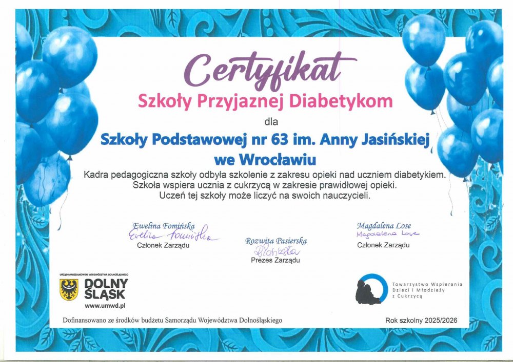 Certyfikat Szkoły Przyjaznej Diabetykom