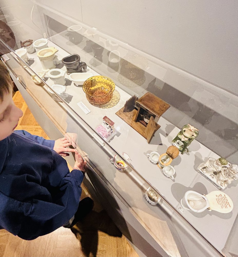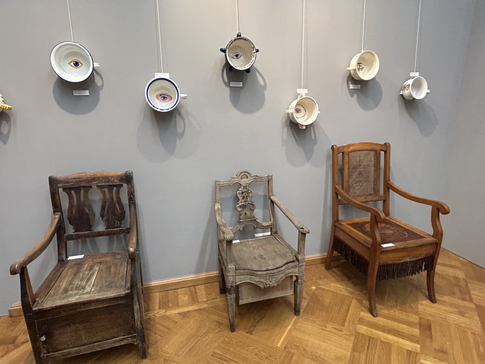 Ciekawie było zobaczyć i dowiedzieć się m.in., że w dawnych czasach do spłukiwania toalety używano torfu, że ubikacje wyglądały, jak krzesła, a niemieckie nocniki mają namalowane oko w środku. Czego to ludzie nie wymyślą?:)...No cóż, nic, co ludzkie nie jest nam obce.