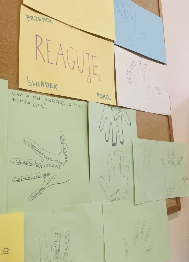 Uczniowie klas pierwszych utrwalali hasło „STOP, PRZESTAŃ!”, ucząc się reagowania w sytuacjach, które sprawiają im przykrość. Poznawali sposoby radzenia sobie z dokuczaniem oraz zasady aktywnego słuchania. Wspólnie z bohaterami – Małpką i Tygryskiem – odgrywali scenki, ćwicząc umiejętność słuchania i reagowania. W ramach Tygodnia Życzliwości odbyły się działania wychowawcze: Krzesło komplementów oraz Poczta życzliwości, podczas których uczniowie pisali sobie miłe słowa.
