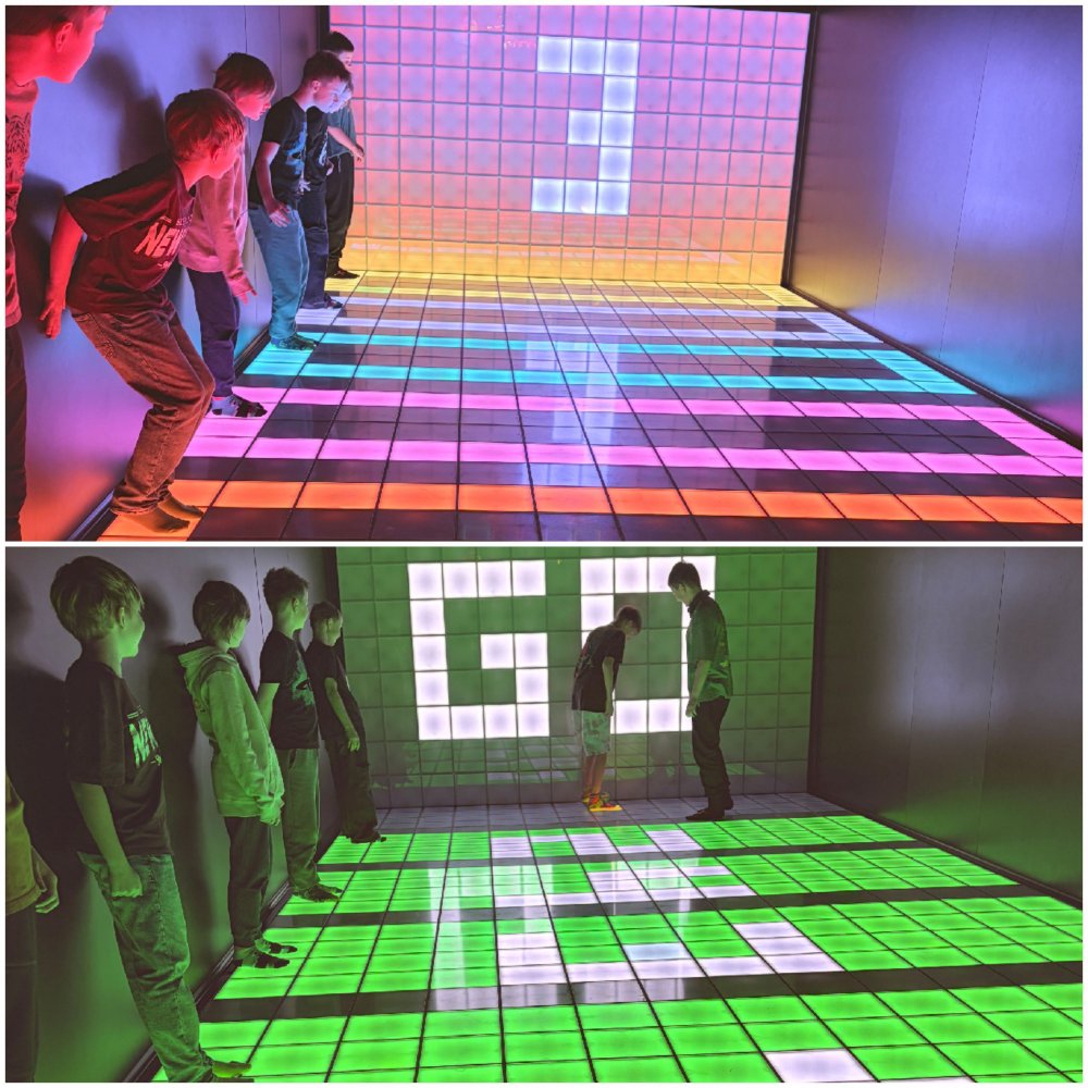 Część grup odwiedziła również Pixel XL przy ul. Świdnickiej we Wrocławiu, gdzie interaktywne gry na wielkoformatowej planszy pozwoliły połączyć ruch, współpracę i świetną zabawę.