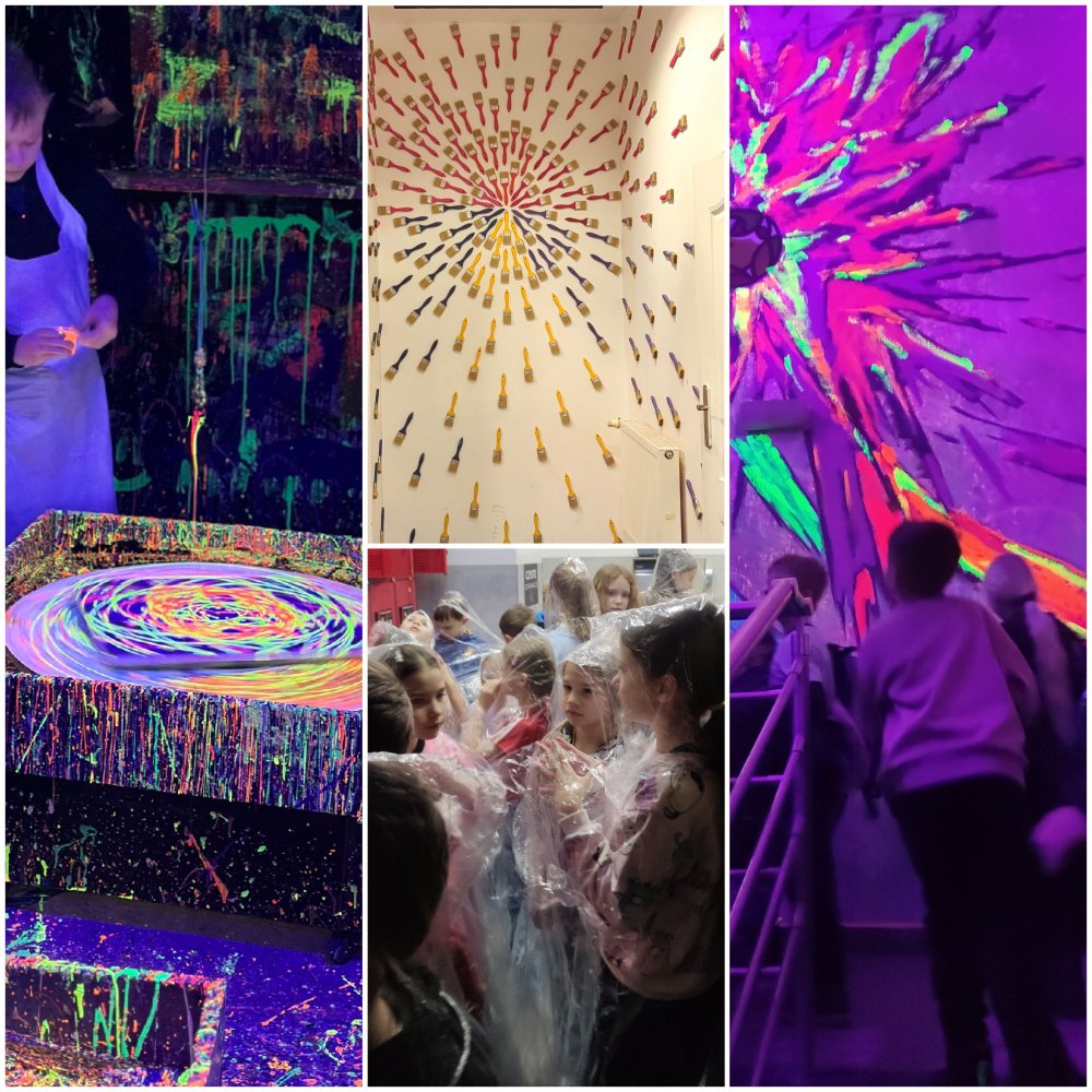 Równolegle inna grupa uczestniczyła w zajęciach artystycznych w Pigcasso we Wrocławiu. Tam dzieci mogły dać upust swojej kreatywności, malując na płótnie oraz bezpośrednio na ścianach, tworząc prawdziwe, kolorowe dzieła sztuki. Swoboda twórcza i artystyczna atmosfera sprawiły, że każdy uczestnik poczuł się jak prawdziwy artysta.