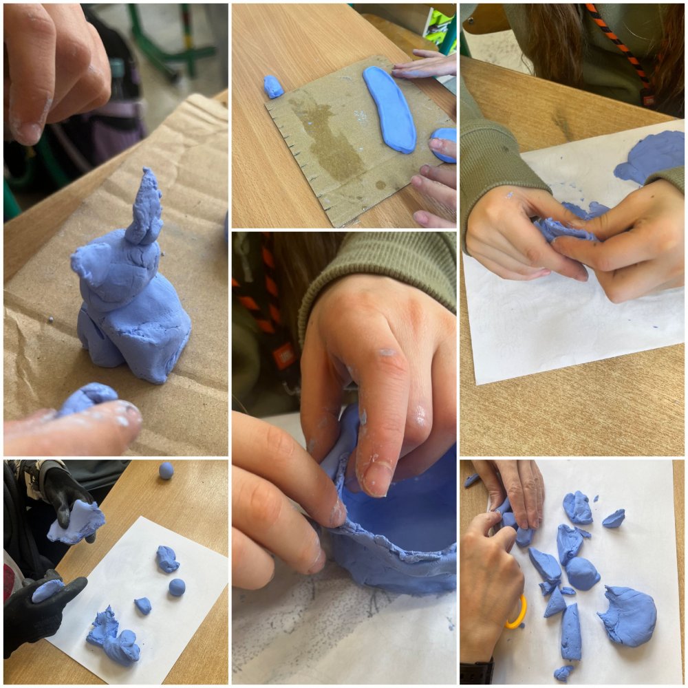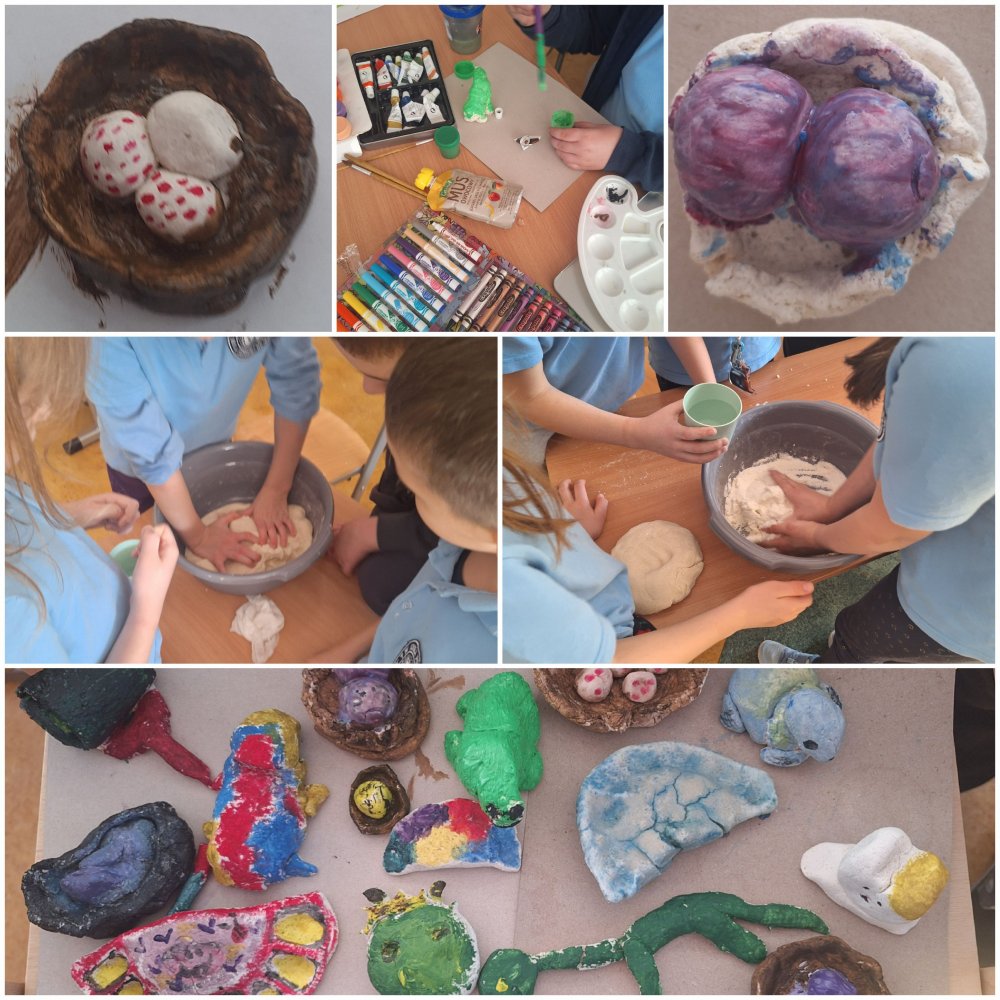 Dzięki niezastąpionej glinie nasze świetliczaki mogły przygotować przepiękne wiosenno- wielkanocne figurki tj. żabki, króliczki, a nawet gniazdka z jajeczkami ćwicząc przy tym małą motorykę.