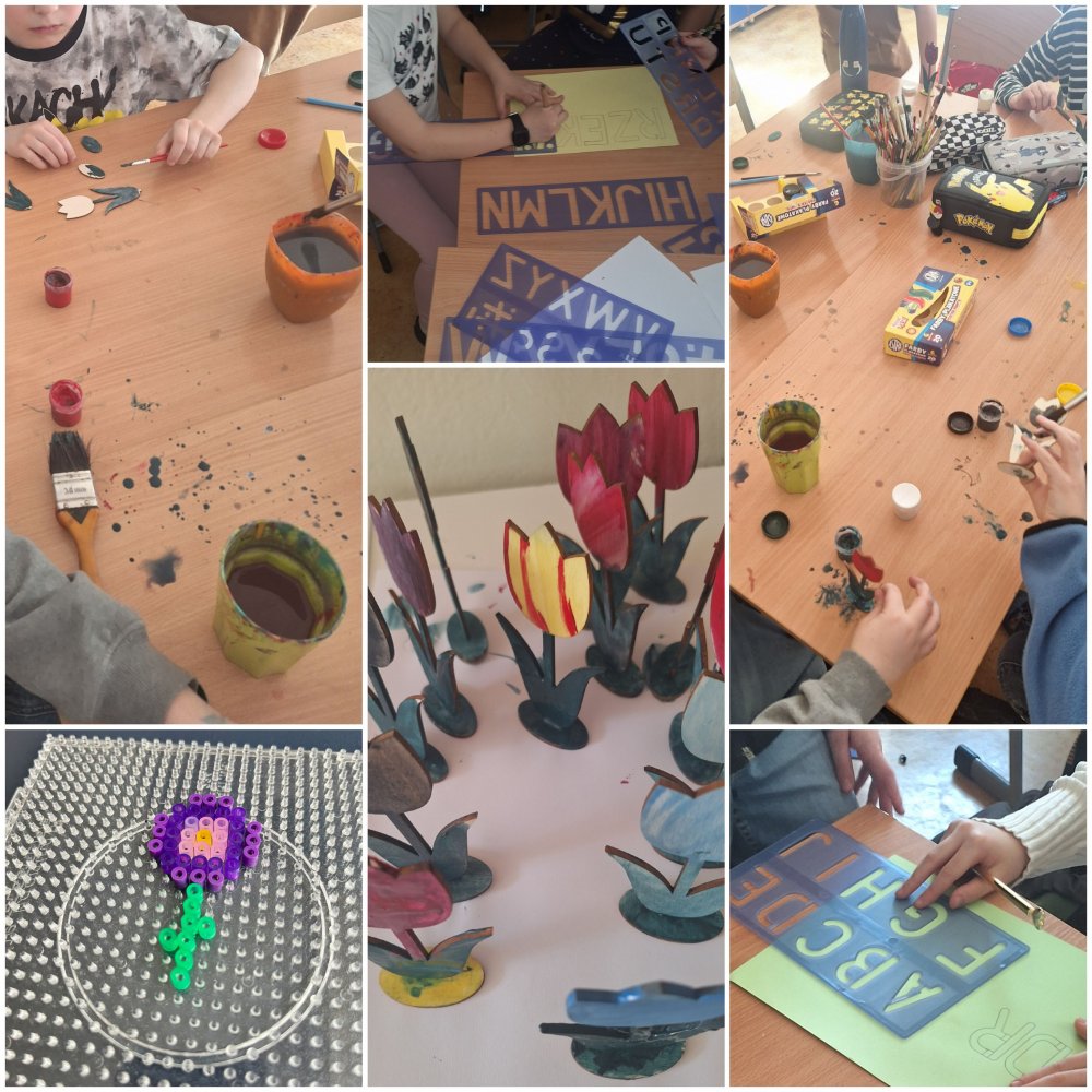 Marzec w świetlicy upłynął wszystkim z uśmiechem i radością związaną z nadchodzącą WIOSNĄ!!! Dzieci tworzyły przepiękne wiosenne kompozycje kwiatowe. Były malowane na papierze, odbijane z woreczków śniadaniowych, w formie obrazów, witraży, prac przestrzennych, kwiaty nocą, kwiaty z bibuły i oczywiście na laurkach z okazji Dnia Kobiet przygotowanych przez naszych wspaniałych uczniów.