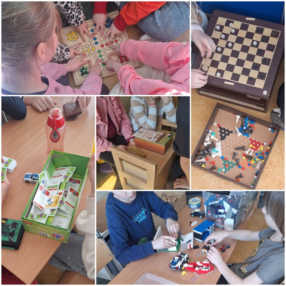 Jak w każdym miesiącu nie zapominamy o naszym cyklu spotkań przy grach „Planszowa świetlica”. Ta aktywność cieszy się wielkim zainteresowaniem wśród dzieci, a do naszych zbiorów trafiają co chwilę nowe gry. W dalszym ciągu klocki u nas królują, a dzieci w swoich konstrukcjach przechodzą samych siebie.