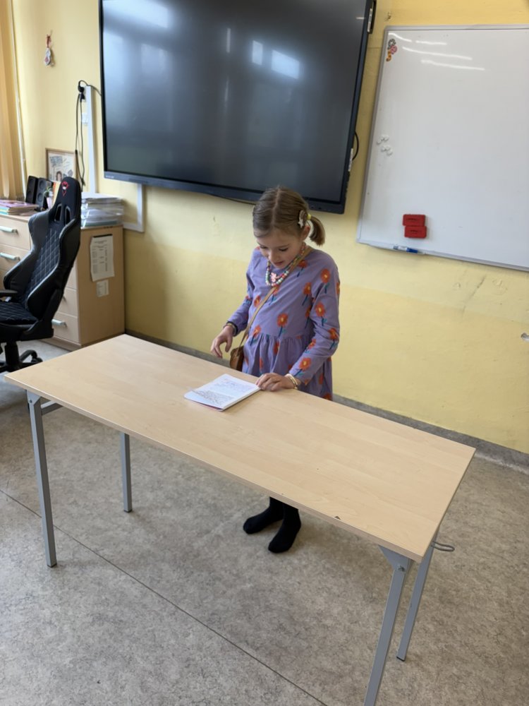 Uczniowie prezentowali swoje postacie, odgrywali krótkie scenki i starali się oddać ich charakter, sposób mówienia oraz emocje. Dzięki temu mogli lepiej zrozumieć bohaterów książki – ich relacje, problemy i sposób patrzenia na świat – a jednocześnie przełamać tremę i poćwiczyć wystąpienia przed publicznością.