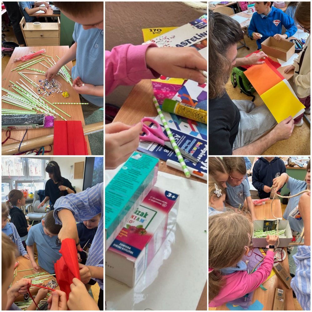 Rodzice Bolka zechcieli podjąć wyzwanie przeprowadzenia zajęć dla dzieci z cyklu – co robią rodzice, gdy jesteśmy w szkole? i rodzice w roli nauczyciela. Poznaliśmy m.in. różne rodzaje domów i ich nazw: schronienie, baza, gniazdo, oaza, kryjówka, lokum, enklawa, azyl. Obejrzeliśmy zdjęcia różnych domów, a następnie sami stworzyliśmy domy według własnych projektów z wykorzystanie różnorodnych materiałów. Było ciekawie, pasjonująco i bardzo miło.