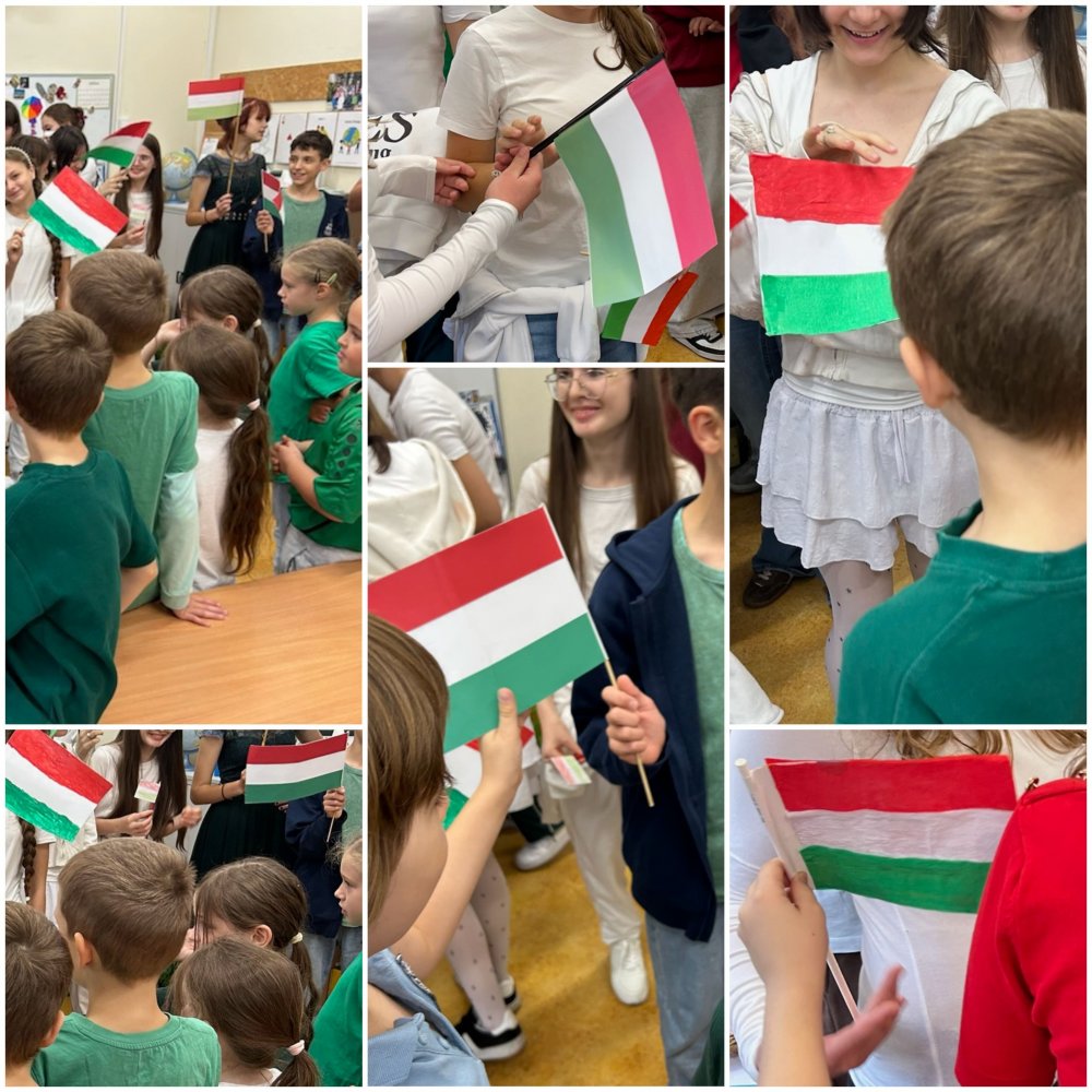 Klasy partnerskie rozpoczęły współpracę. Razem przebraliśmy się w kolory flagi węgierskiej na znak integracji i wspólnych działań. Poznawaliśmy bliżej Węgry. To, że stolicą Węgier jest Budapeszt, a gulasz i papryka to narodowe potrawy węgierskie, wie prawie każdy, ale my szukaliśmy ciekawostek.