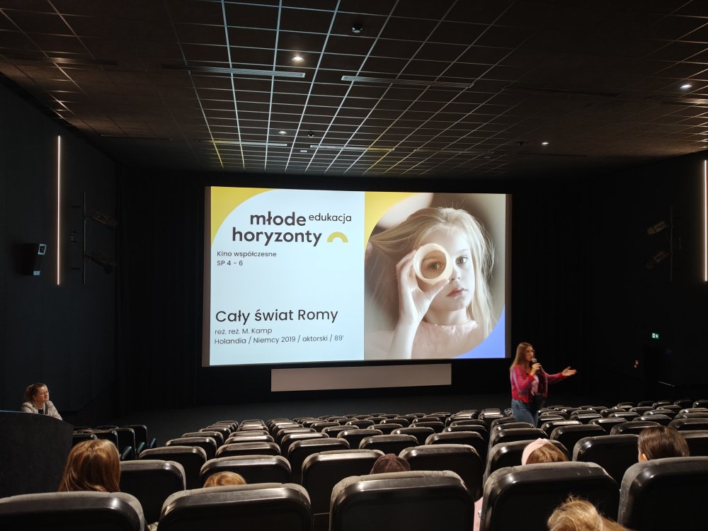 W środę uczniowie klasy 5a rozpoczęli udział w cyklu Kino współczesne organizowanym przez kino Nowe Horyzonty w ramach projektu edukacji filmowej. Podczas pierwszego spotkania obejrzeli film "Cały świat Romy", który w poruszający sposób ukazuje relację między starzejącą się babcią a jej wnuczką.