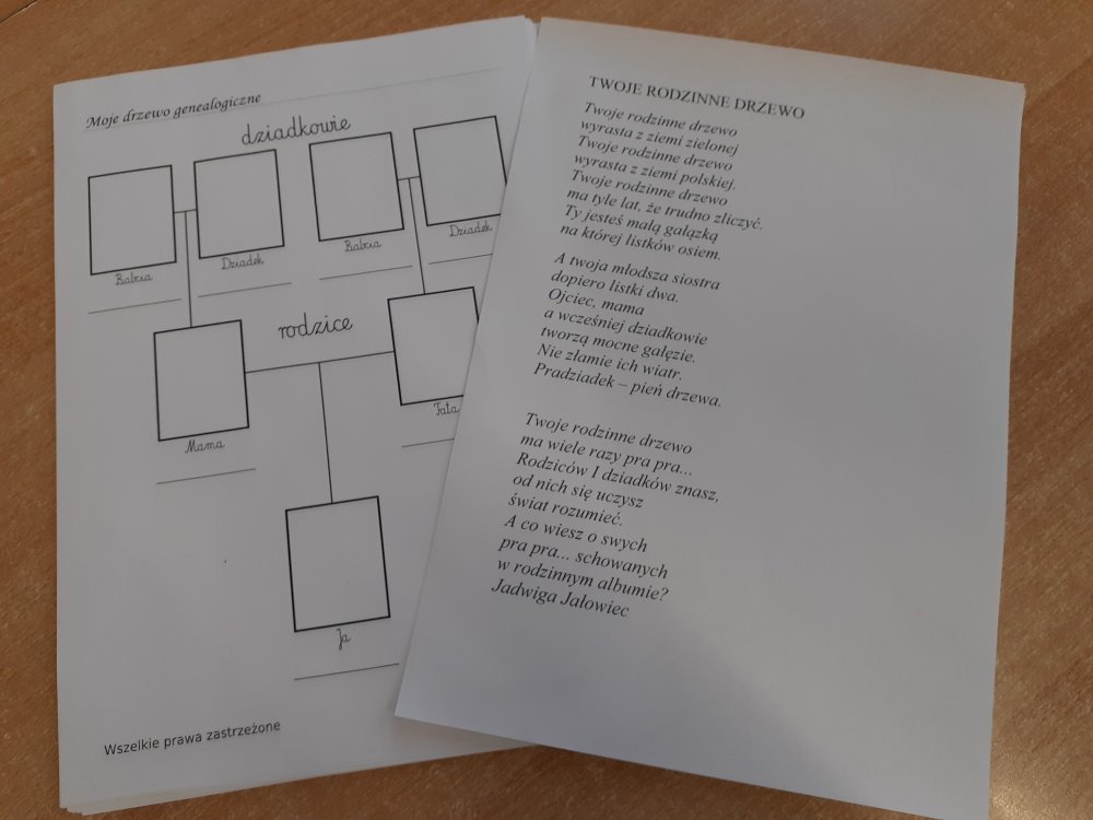 W tym roku na zajęciach skupiliśmy się także na tym, że warto poznawać rodzinne historie (to temat podarowanej książki) i wiedzieć, kim są nasi rodzice, dziadkowie (uczniowie w ramach zajęć przygotowali drzewo genealogiczne najbliższej rodziny).