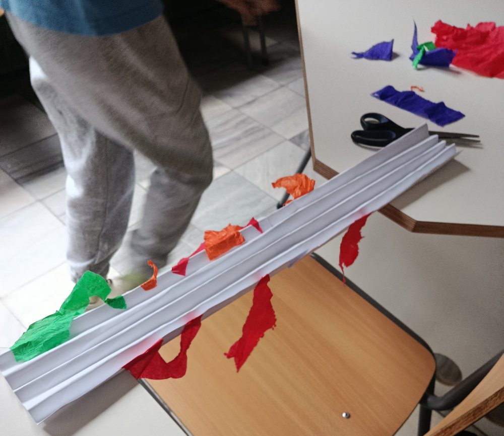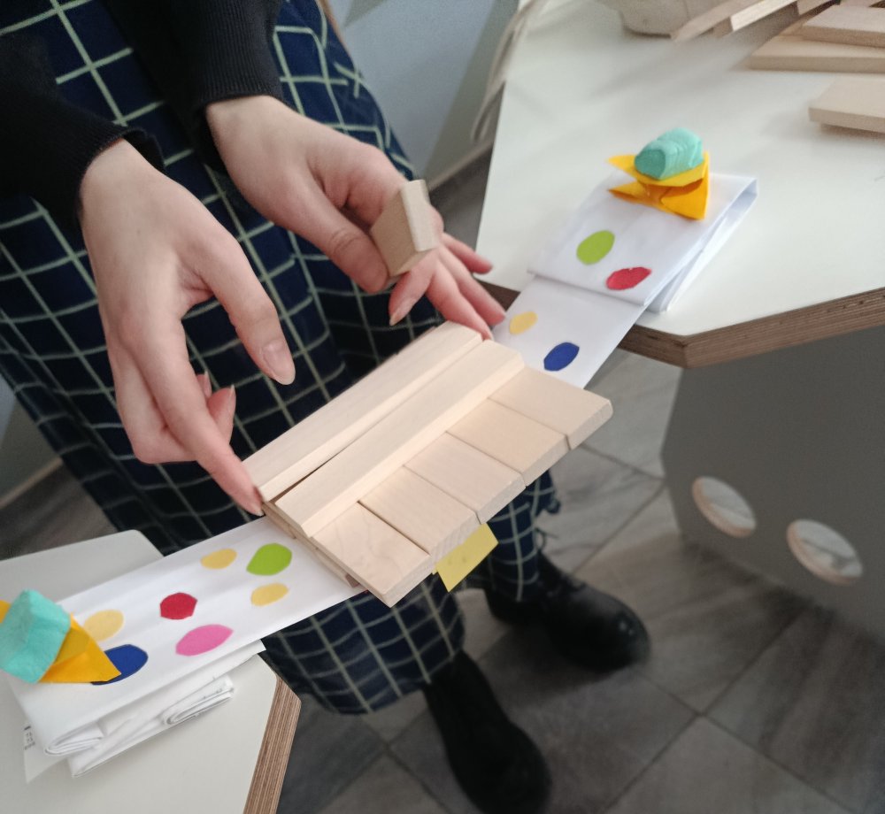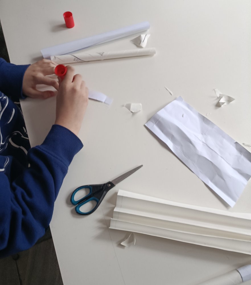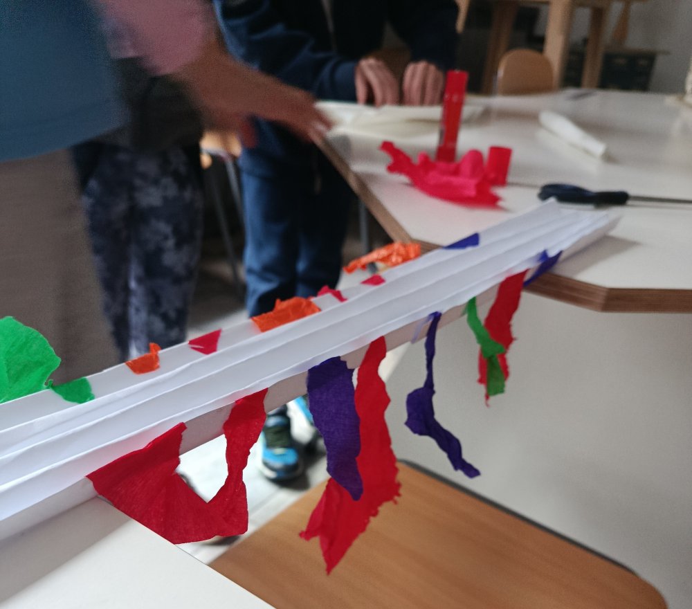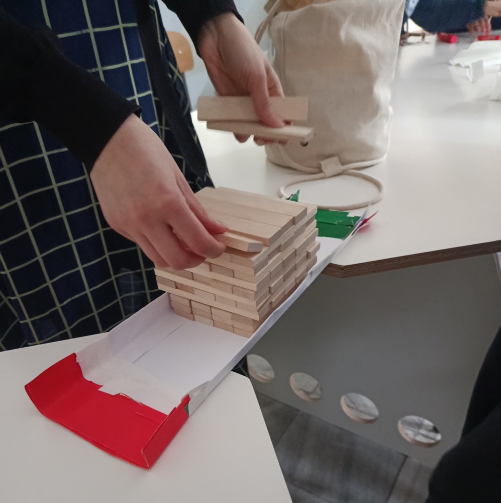 Największe emocje wzbudziła część praktyczna zajęć. Uczniowie pracowali w grupach i wykonywali różne zadania konstrukcyjne, które wymagały współpracy, kreatywności oraz logicznego myślenia. Finałem warsztatów było wyzwanie polegające na zbudowaniu z papieru mostu, który utrzyma jak największy ciężar.