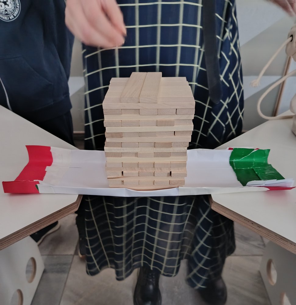 Efekty pracy uczniów były zdumiewające. Najbardziej wytrzymała konstrukcja utrzymała ponad sto klocków (!), co wywołało ogromną radość i dumę wśród młodych konstruktorów. Zadanie pokazało, że nawet z prostych materiałów można stworzyć bardzo stabilną konstrukcję, jeśli zastosuje się odpowiednie pomysły i rozwiązania.