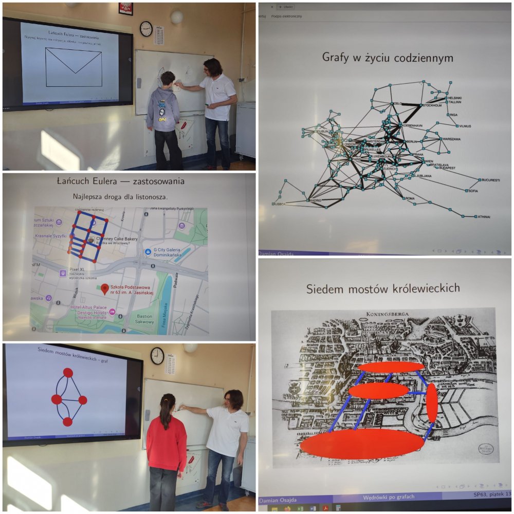 Szóstoklasiści dowiedzieli się, jakie praktyczne zastosowania mają grafy oraz, jak dzięki nim można analizować różne trasy i połączenia. Nauczyli się, jak szybko i precyzyjnie sprawdzić, czy w danym grafie istnieje tzw. łańcuch Eulera – czyli mówiąc prościej, czy możliwy jest taki spacer po grafie, w którym przez każdą krawędź przechodzimy dokładnie raz. Ta wiedza pozwoli nam np. zaplanować optymalny spacer po uliczkach miasta.