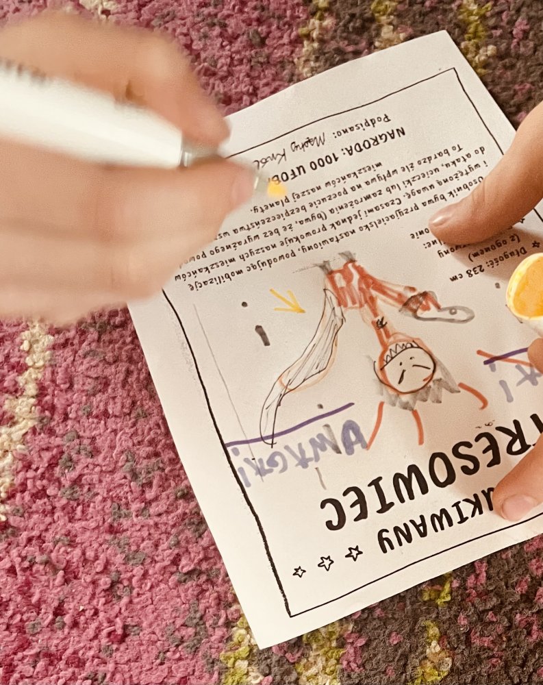 Wylądowaliśmy na planecie mądrości! Chcieliśmy pomóc Mądremu Królowi przywrócić spokój. I udało się - odnaleźliśmy wszystkie emocje (bo wszystkie są ważne), przywołaliśmy rycerza tlenowca (bo oddech pozwala skupić się na tym co „tu i teraz”) i… byliśmy raz jak sztywny, surowy makaron, a raz jak ugotowane, elastyczne spagetti!
