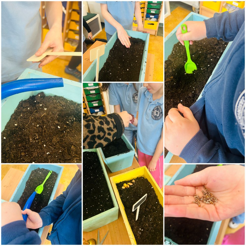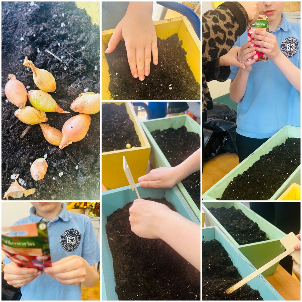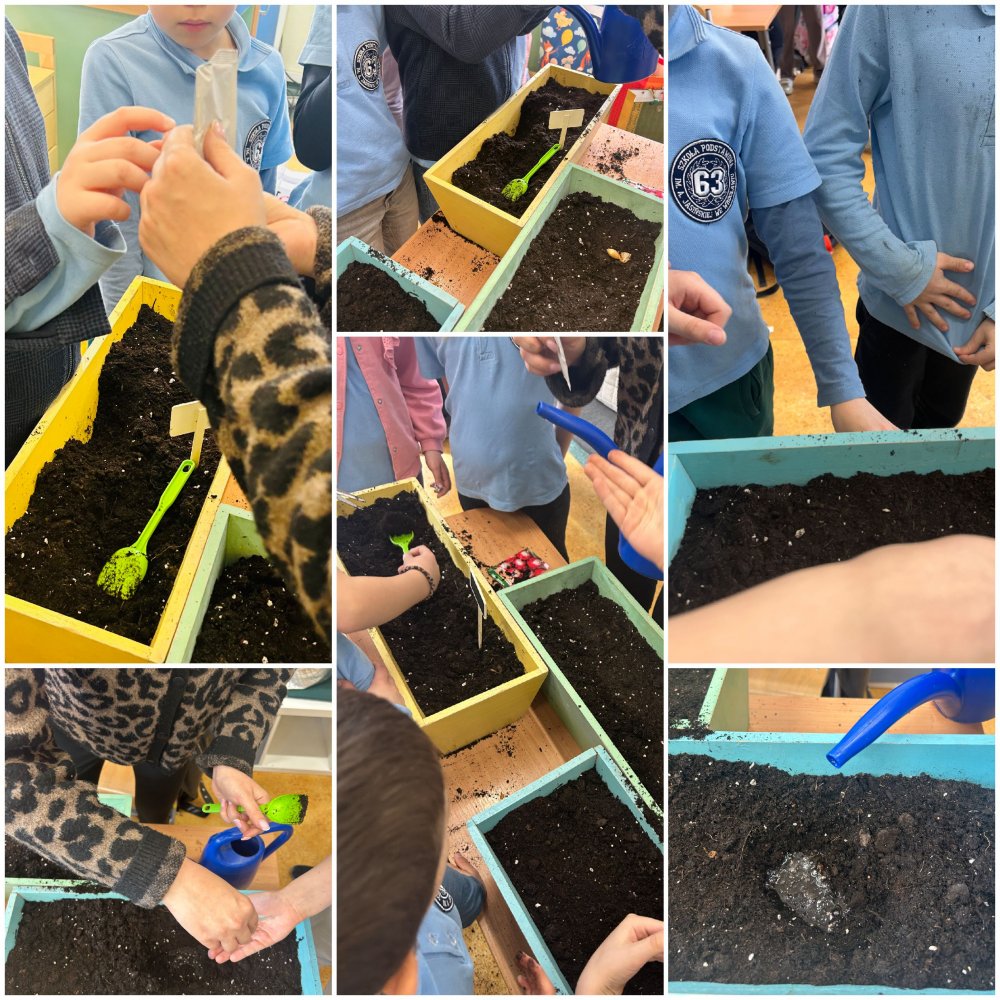 W klasie 2a odbyła się lekcja, podczas której uczniowie zamienili się w prawdziwych ogrodników! Nasza sala lekcyjna na chwilę zmieniła się w zielony ogród pełen pracy i radości. Najpierw przygotowaliśmy doniczki, starannie wypełniając je ziemią, a następnie z wielkim zaangażowaniem sadziliśmy nasiona rzeżuchy oraz cebulki szczypiorku. Każdy uczeń z troską dbał o swój „mały ogródek”, podlewając rośliny i obserwując pierwsze efekty swojej pracy.