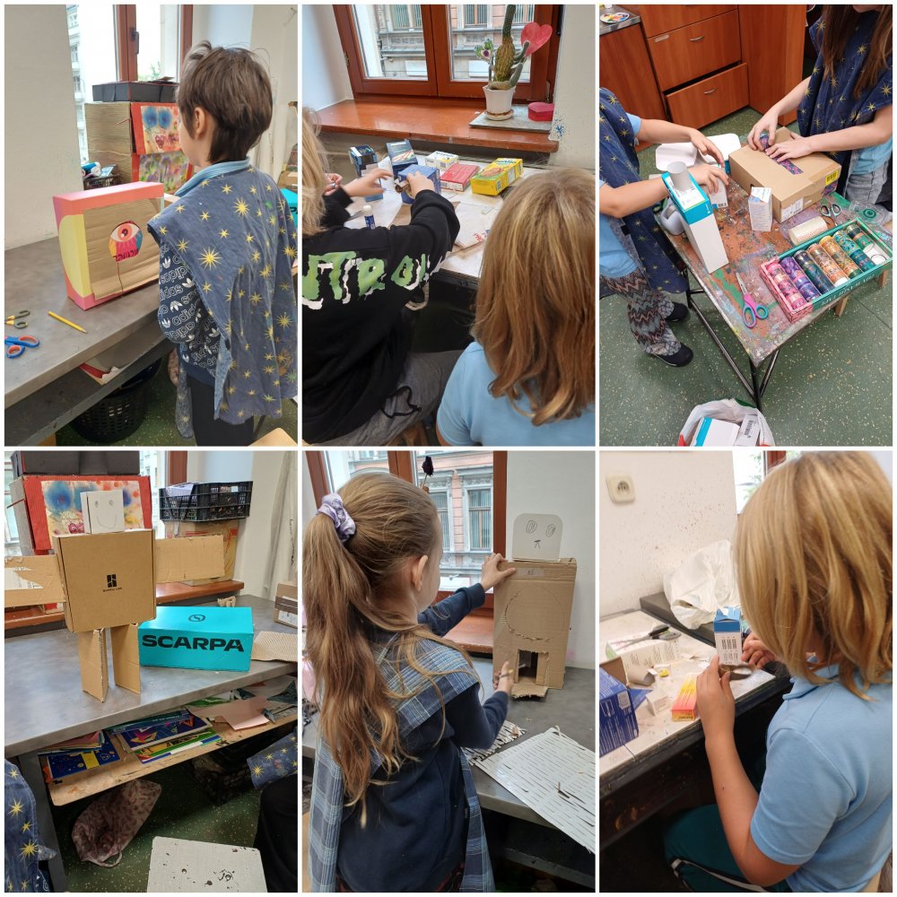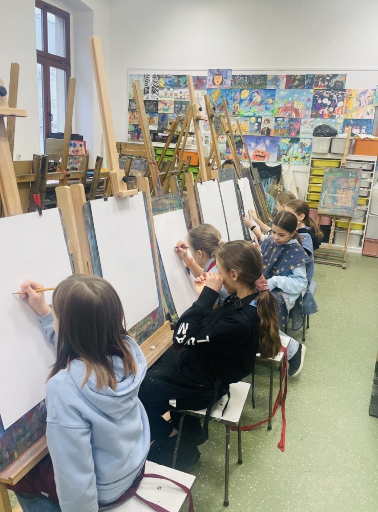 Podczas zajęć w pracowni plastycznej uczniowie poznają i doskonalą różnorodne techniki artystyczne. Wykonują prace z wykorzystaniem farb plakatowych i akwareli, uczą się zasad kompozycji oraz mieszania kolorów. Tworzą rysunki, kolaże oraz formy przestrzenne z papieru i innych materiałów. Zajęcia te pozwalają im wyrażać własne emocje i pomysły, rozwijają wyobraźnię oraz wrażliwość estetyczną.