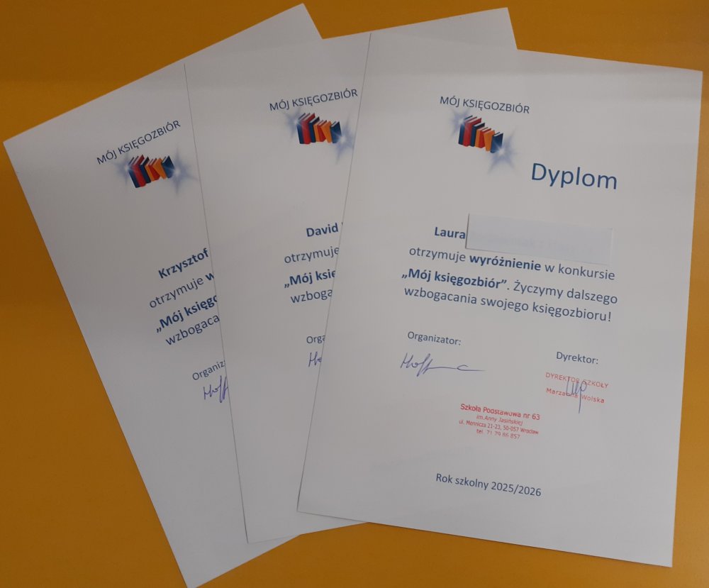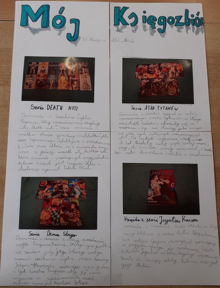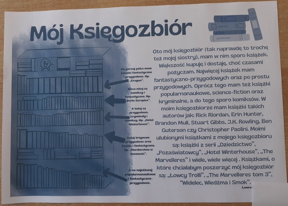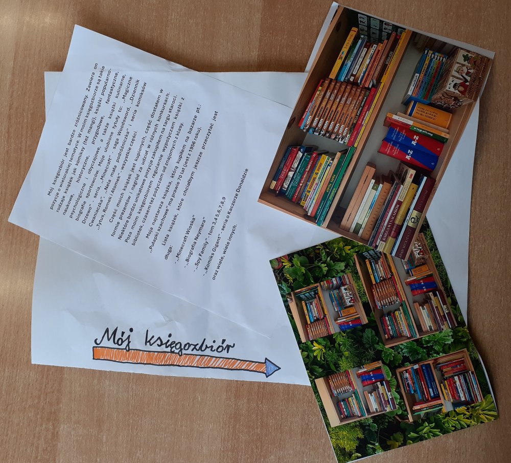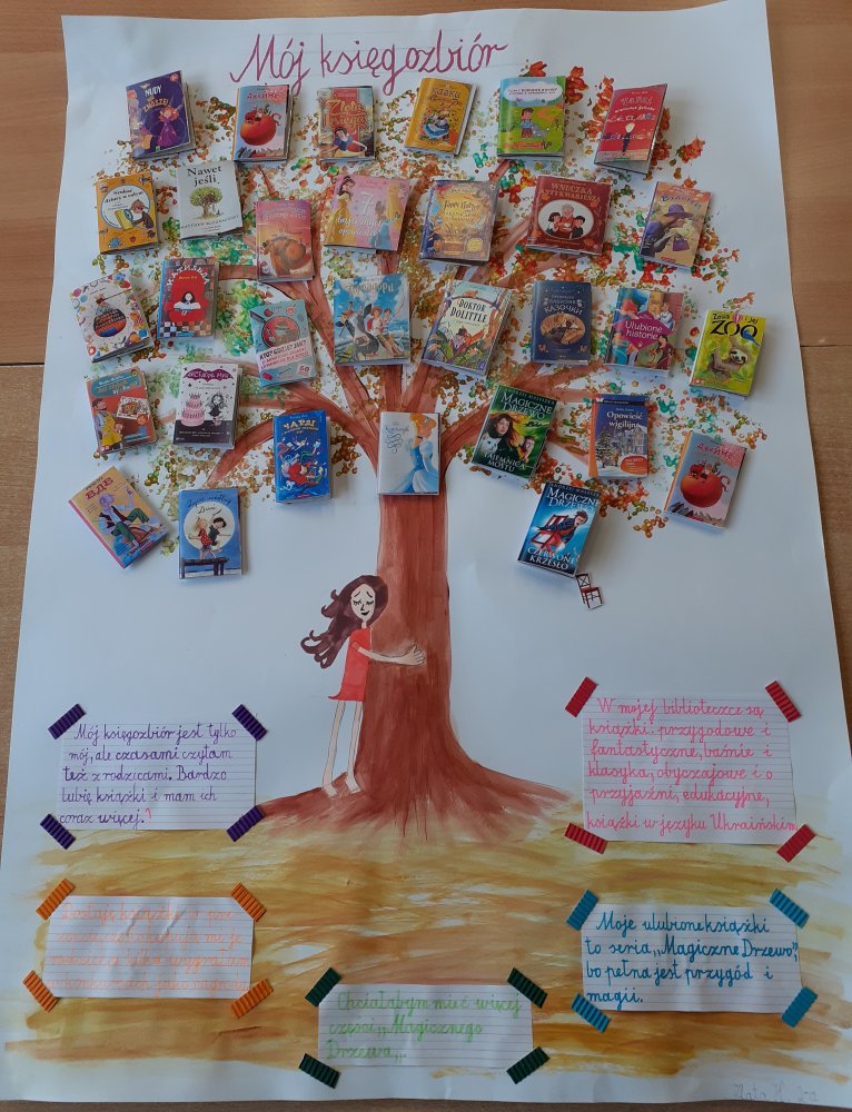 I miejsce – Szymon M. z klasy 5a (piękna, rozbudowana praca, w której Szymon przybliża nawet konkretne strony swoich książek) oraz Zlata H. z klasy 2a (za przepiękne przedstawienie i bardzo pracochłonne swojego księgozbioru)