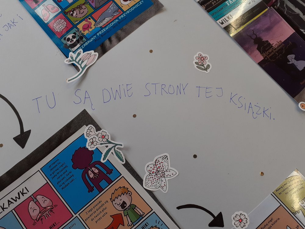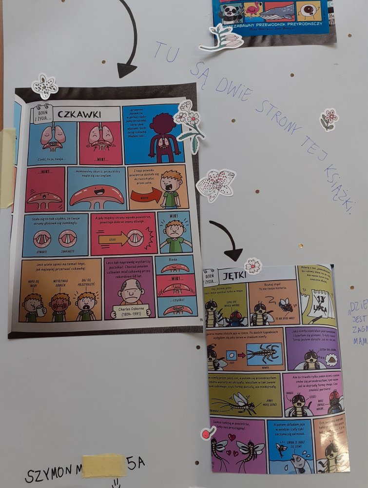 - prace Miłosza, Laury, Davida i Krzysztofa – na tablicy ogłoszeń przed biblioteką.