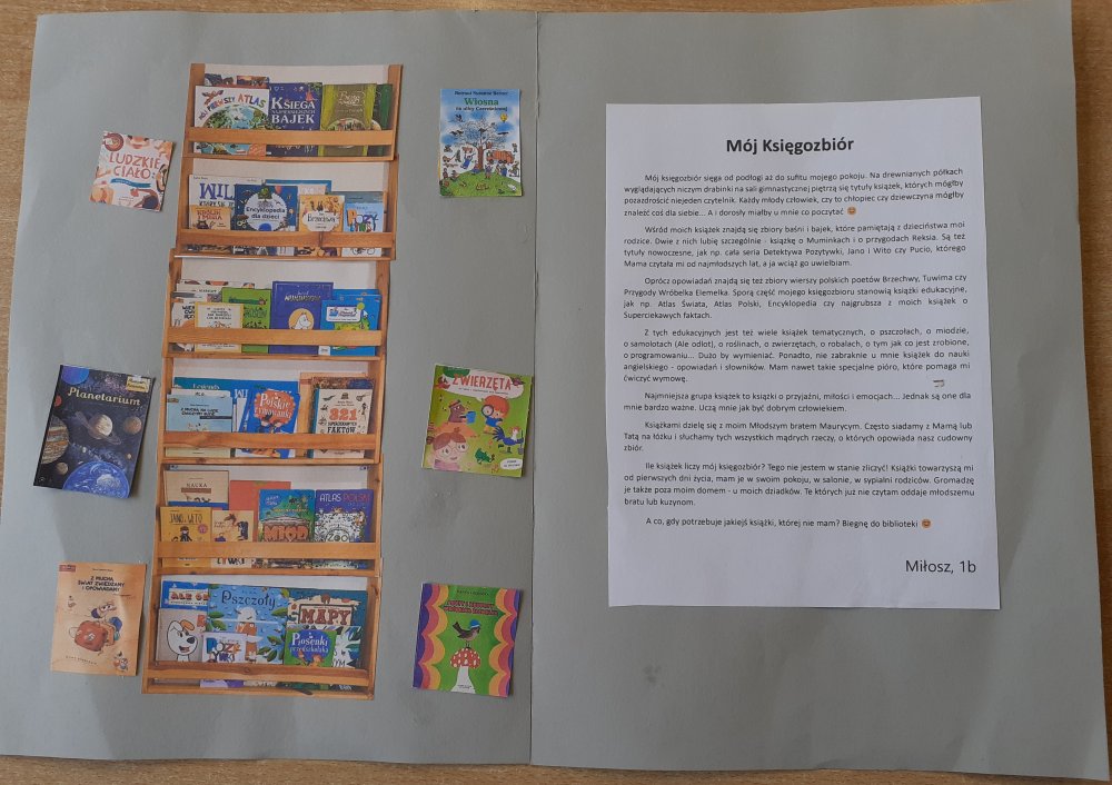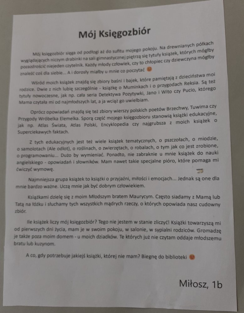 II miejsce – Miłosz J. z klasy 1b (za wnikliwą analizę swojego księgozbioru).