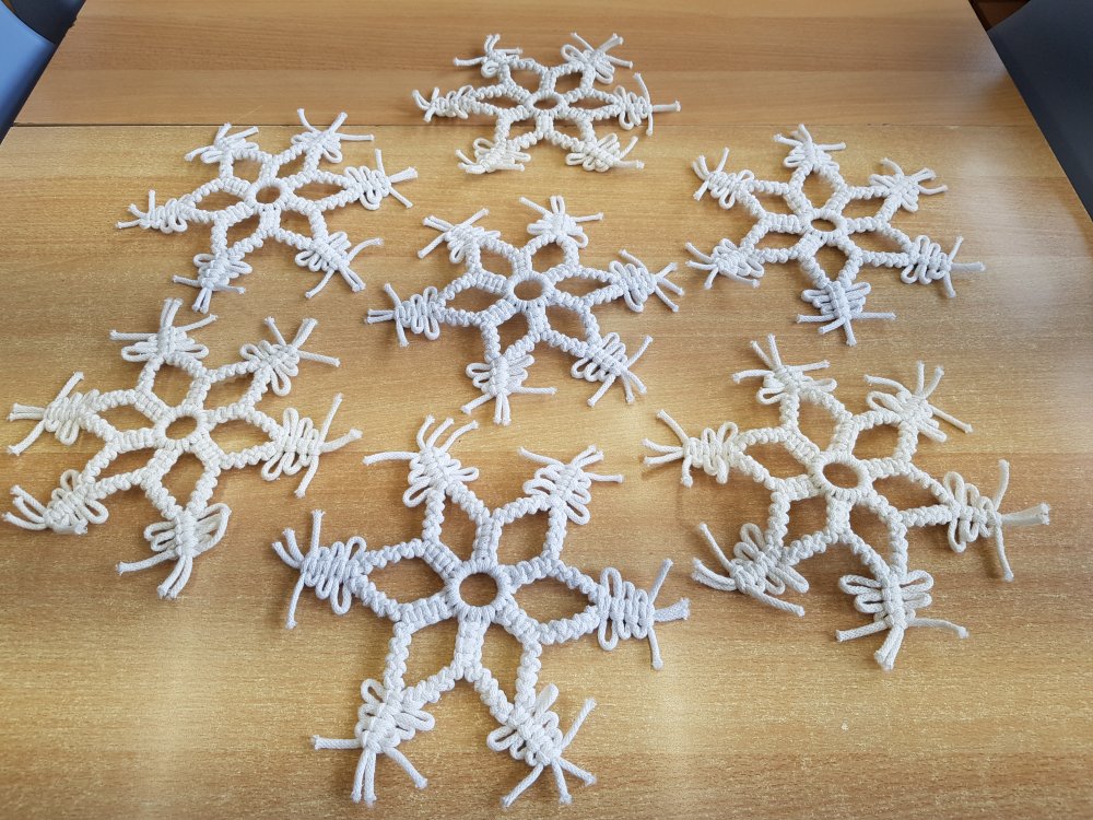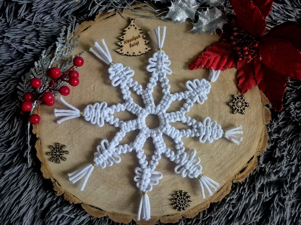 Handmade by Rodzice, mama Damiana P. kl. 5a i Natalki P. kl. 3b - makrama, śnieżynki na okno