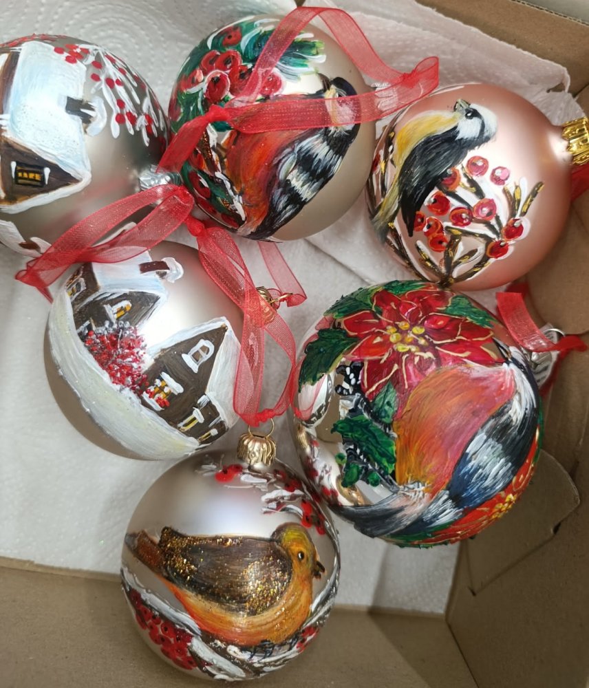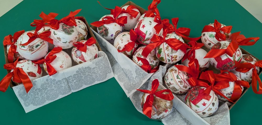 Handmade by Uczniowie - klasa 1b, bombki wykonane techniką decoupage